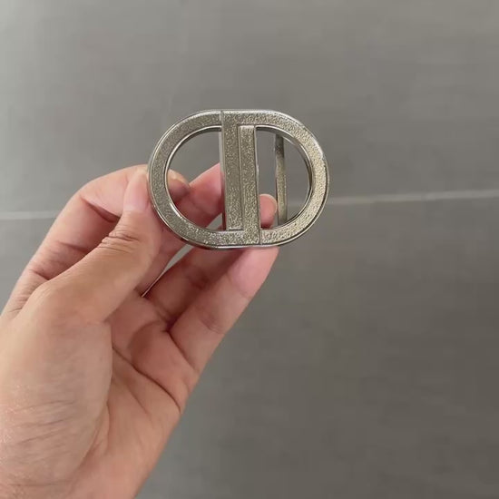 The DD Belt Buckle features a brushed metal finish with sculpted edges and a clean, compact form. Designed to pair with your favorite strap or used to elevate a custom look, it adds quiet power to your fit.